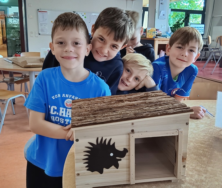 Die Ferienwoche drehte sich u.a. um das Thema Herbst. Die Kinder bauten mit Hilfe der ErzieherInnen zwei wunderschöne Igelhäuser und versteckten diese unter großen Laubhaufen hinter dem Zaun unseres Spielplatzes. Da sie den Eingang etwas frei hielten, haben sie nun Gelegenheit, eventuelle Besucher zu beobachten. Das wird eine spannende Geschichte.
